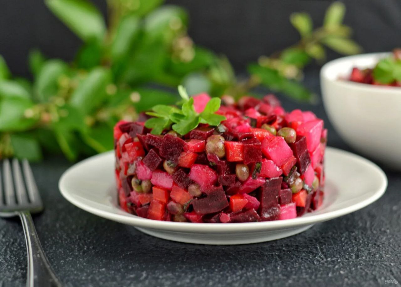 Kartoshka, sabzi va tuzlamalar qo‘shilgan lavlagi salati