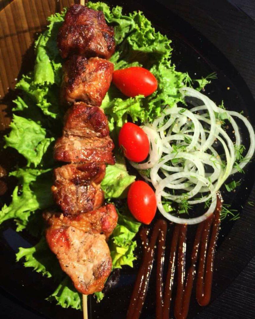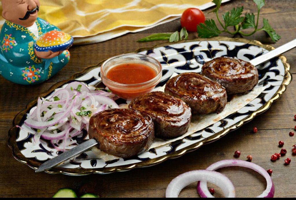 Rulet shaklida tayyorlangan Shashlik (go‘sht kabob).