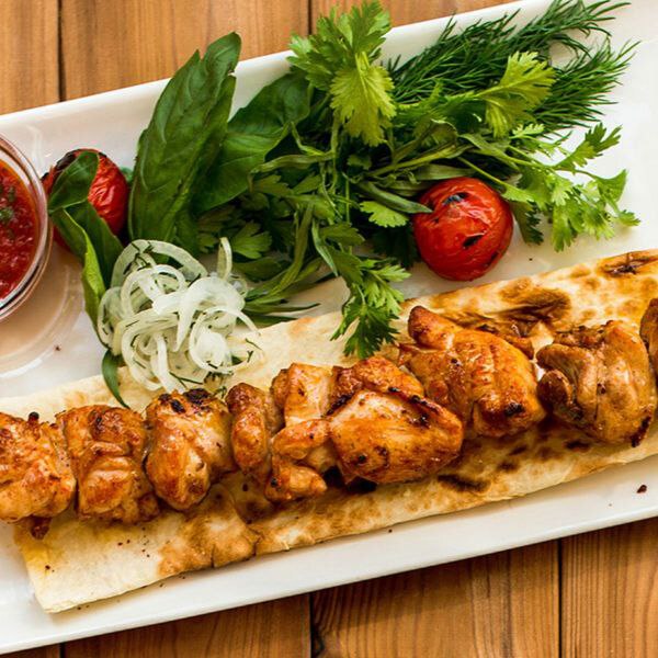Marinalangan tovuq go‘shti bo‘laklaridan tayyorlangan kabob