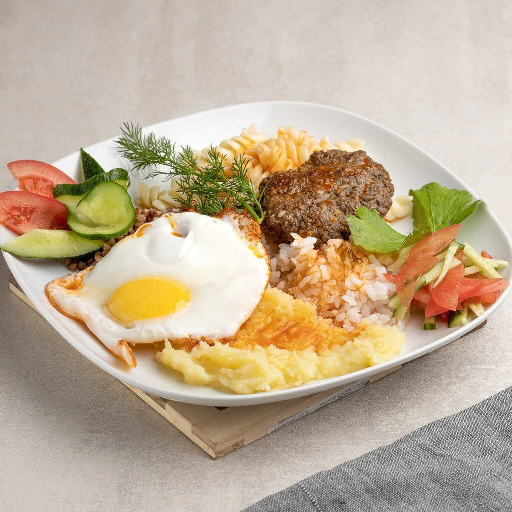 Maydalangan mol go‘shti kotleti, ko‘pincha turli garnirlar bilan tortiladi